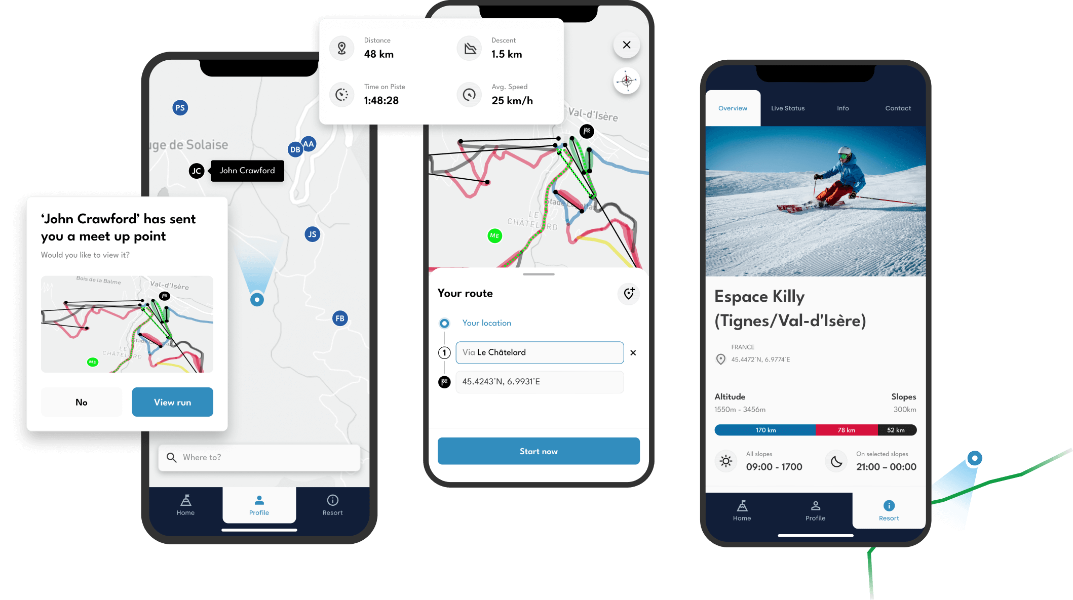 Set up groups with other PisteMapper users, see each other's location and share or accept planned routes.